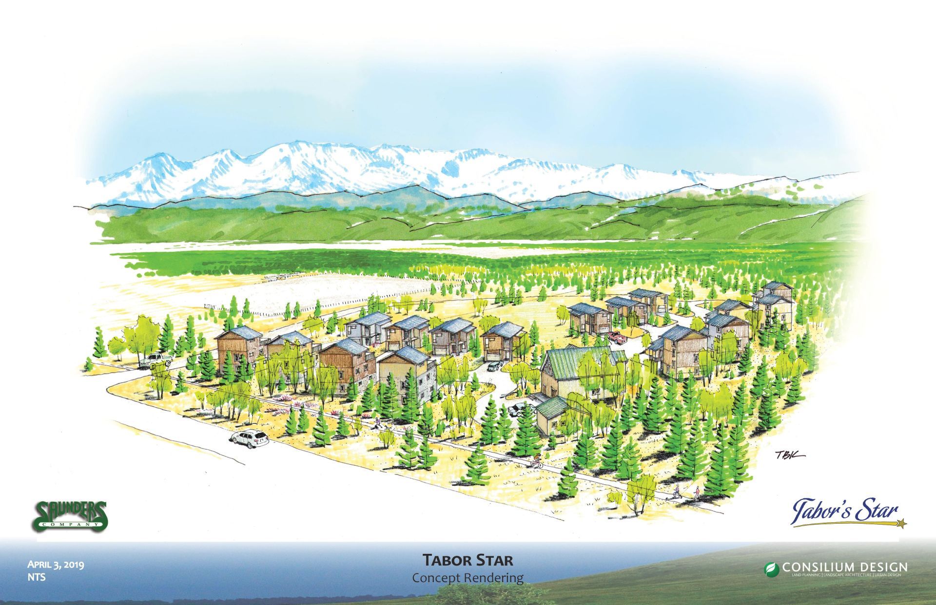 The architecturally-designed mountain rustic homes are nestled in a wooded setting with unobstructed mountain views and are served by city utilities, making Tabor's Star the perfect mountain retreat. Shown here are some suggested designs. The homes are clustered to maximize open space and mountain views. (See the plat map below). This neighborhood is adjacent to the new community park and existing rodeo ground, across the street from the Aquatic Center and a stone's throw from the 11.5 mile Mineral Belt Trail. Plans are to survey and install berms this summer, in preparation for installation of water, sewer and streets. Interested home buyers or investors are encouraged to contact us.